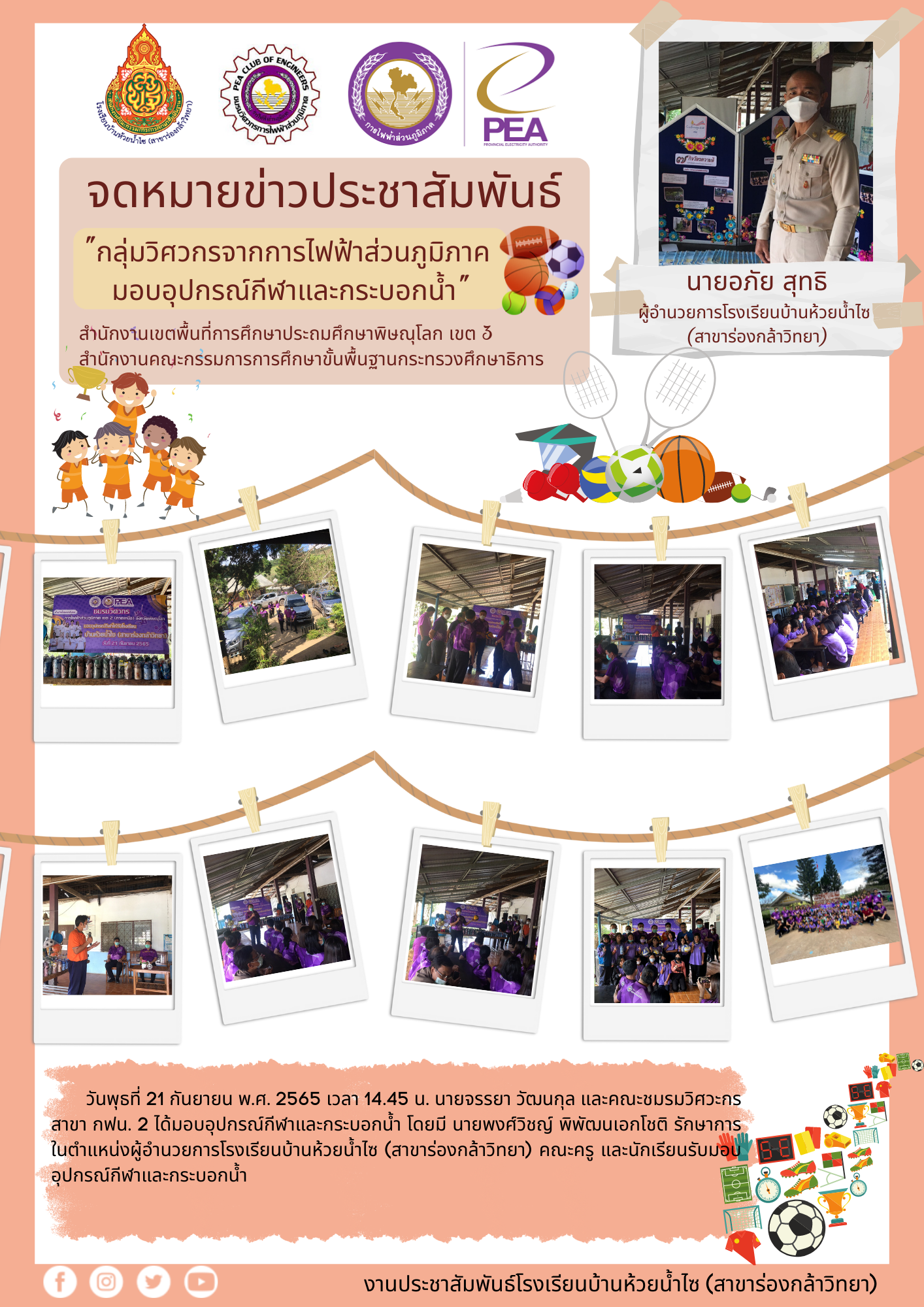 กลุ่มวิศวกรจากการไฟฟ้าส่วนภูมิภาคมอบอุปกรณ์กีฬาและกระบอกน้ำ